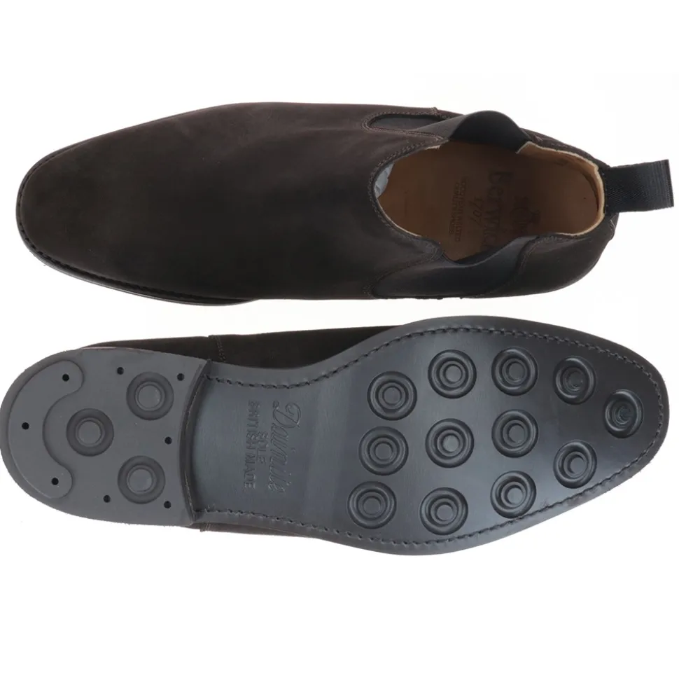 Chelsea-Stiefel aus hellbraunem Wildleder und Dainite-Sohle, ideal für alle Jahreszeiten.