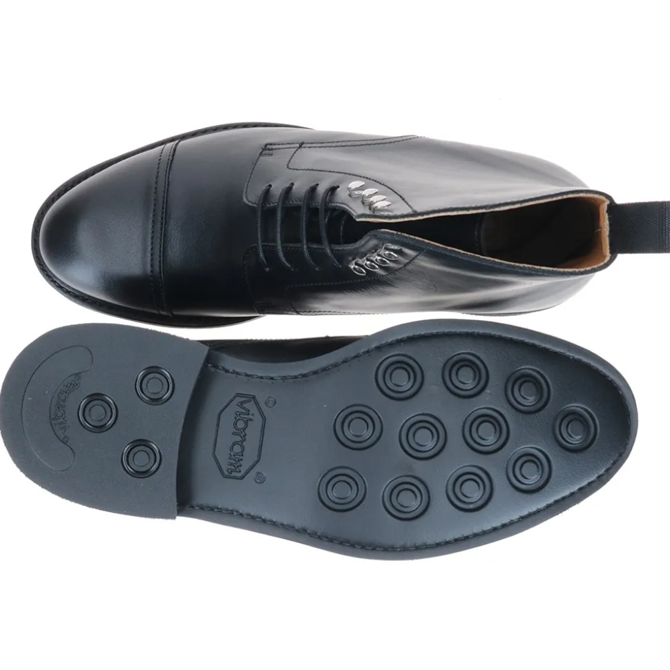 Blücher- oder Derby-Stiefel mit gerader Spitze aus englisch gegerbtem Leder und leichter Vibram-Sohle, mit mikroporöser Zwischensohle und hohem Rahmen zum besseren Schutz vor Feuchtigkeit.