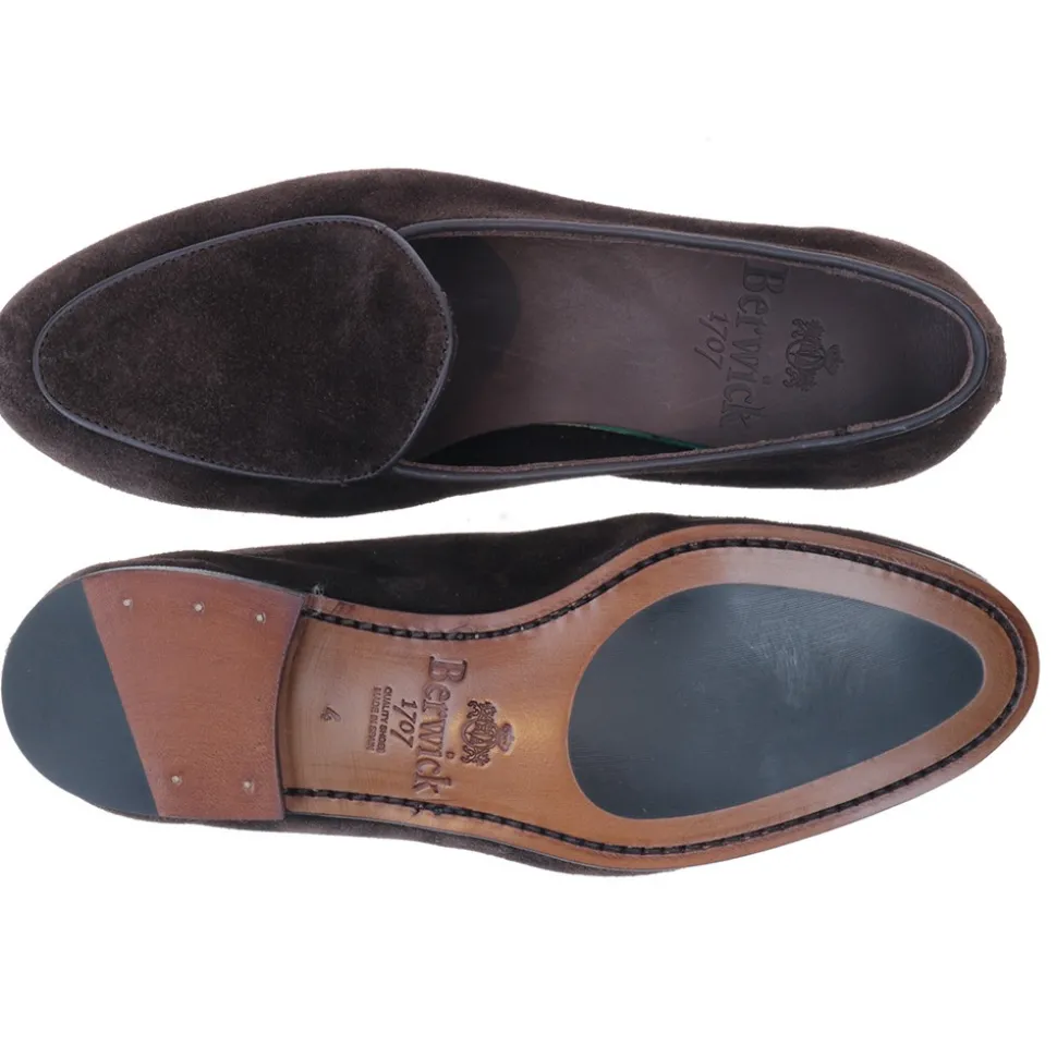 Belgischer Mokassin aus italienisch gegerbtem Wildleder, minimal gefüttert für mehr Frische und mit einer gemischten Sohle/Gummisohle, die der Eleganz der Sohle den rutschfesten Halt des Gummis hinzufügt.