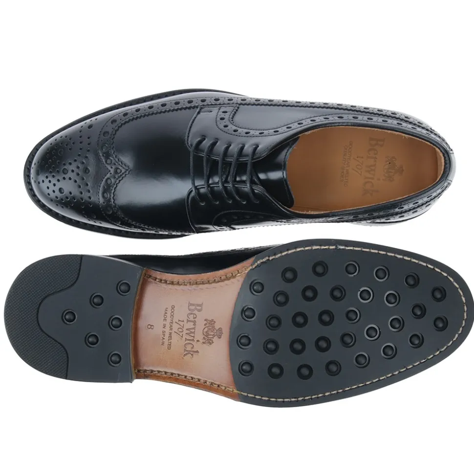 Schuh Typ Blúcher oder Derby mit vega langer oder langer Wingtip-Klinge, Feston und Kletterschuh aus poliertem Leder (Hi-Shine) mit spanischer Gerbung und Mischboden mit eingespritzter Gummisohle mit Lederzwischensohle, geeignet für alle Arten von Bedingungen.