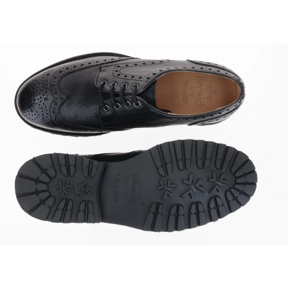 Derby-Brogue-Schuh aus französisch gegerbtem Kalbsleder, mit einer leichten Vibram-Gummisohle und hohen Nähten, die einen besseren Schutz gegen Regen und Feuchtigkeit bieten, zusammengesetzt mit unserer Goodyear-Welt-Herstellung. Alle unsere Schuhe werden in unserem Werk in Almansa, Spanien, hergestellt.