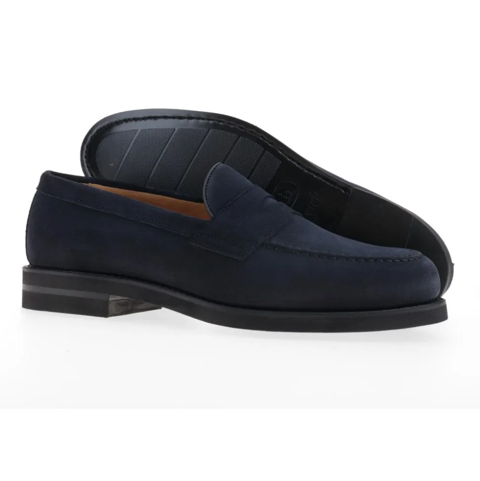 Der Berwick Loafer, eines unserer kultigsten Modelle, ist aus braunem Wildleder gefertigt, das für mehr Festigkeit und Langlebigkeit behandelt wurde und auf einer leichten und äußerst abriebfesten Gummisohle montiert ist. Alle unsere Schuhe werden in unserem Werk in Almansa, Spanien, hergestellt.