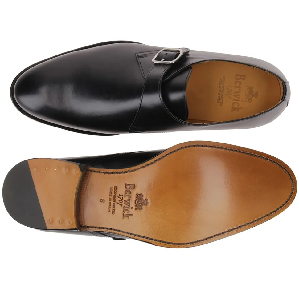 Schuh mit Schnalle oder Monk und glattem Obermaterial aus französischem Box Calf und einfacher Sohle. Für einen formellen oder lässigen Stil, aber immer elegant.