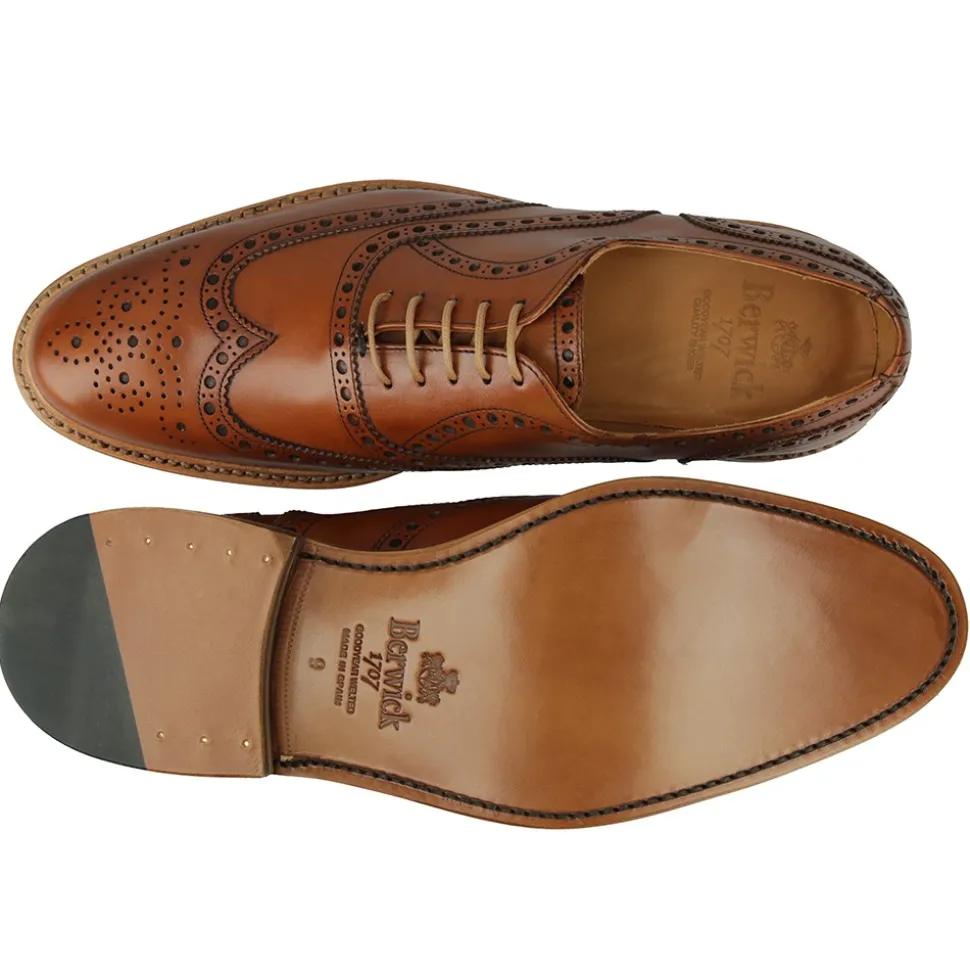Schuh vom Typ Englisch oder Oxford, mit Vega- oder Wingtip-Zehe, Feston und Kletterschuh aus französischem Calf und Doppelsohle. Ein paar Schuhe für einen formellen oder lässigen Stil, mit der natürlichen Farbe Leder vira und Schnürsenkel im gleichen Ton.