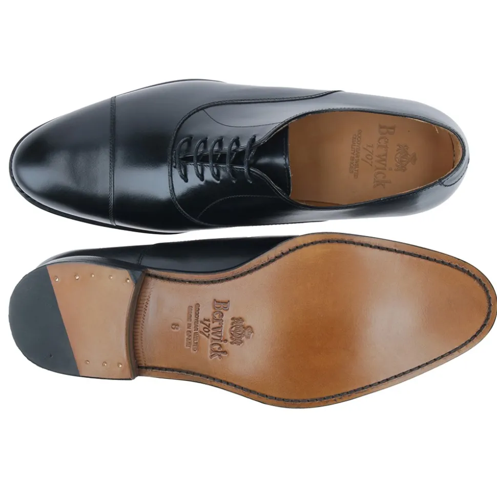 Schuh vom Typ Englisch oder Oxford mit gerader Zehenkappe aus französischem Box Calf und einfacher Sohle. Elegantes, formales und klassisches Design, eine der Ikonen unserer Kollektion.